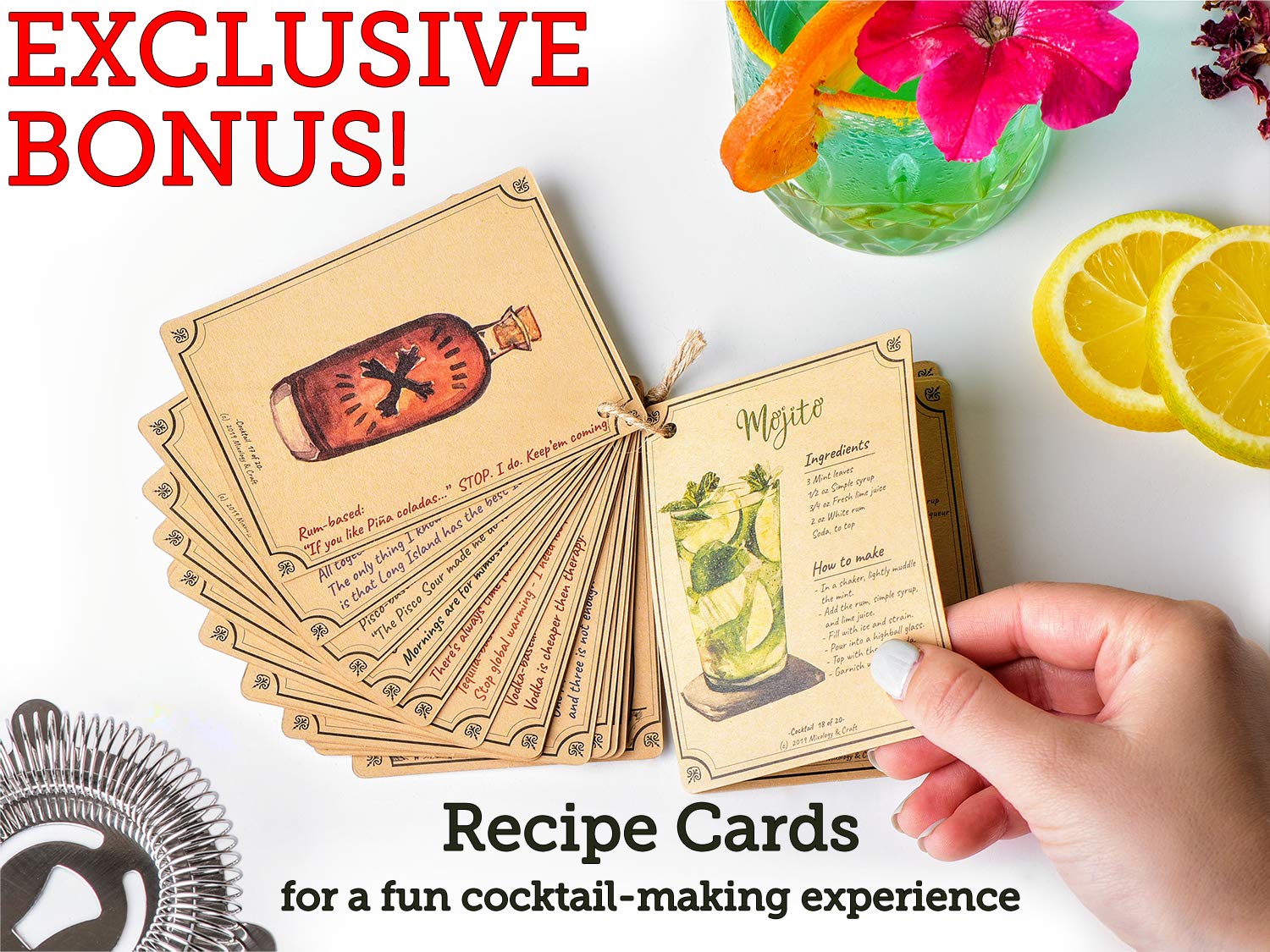 ● 🍹 SIN DUDA EL REGALO PERFECTO PARA LOS AMANTES DE LA COCTELERÍA: Equipo de primera clase, empaquetado dentro de él durable contenedor. ¡Tu destinatario estará encantado como un niño en una tienda de dulces! Además, para hacer que los cócteles sean realmente deliciosos, Te daremos gratis una BONIFICACIÓN exclusiva! "La experiencia de las recetas de Mixology & Craft" - Un catálogo de cócteles en línea.