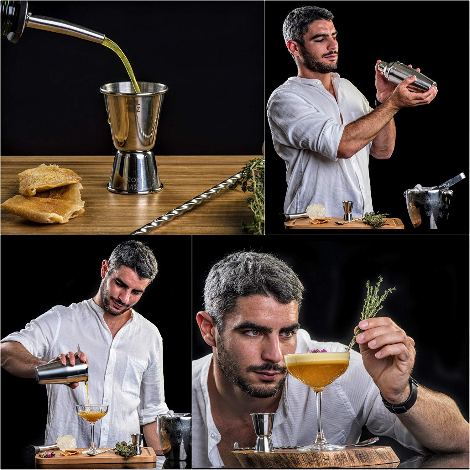 ● 🍹 IRROMPIBLE E INOXIDABLE: juego de cóctel de coctelera de martini resistente y de alta calidad, resistente a la corrosión. A diferencia de los productos similares que se oxidan fácilmente, este kit completo de accesorios para Bares está hecho de una aleación de acero inoxidable de la más alta calidad: SS304 y SS430. ¡No te preocupes! Todo es apto para lavavajillas, así que olvídate del uso y desgaste con estos suministros profesionales para Bares. Calidad garantizada.
