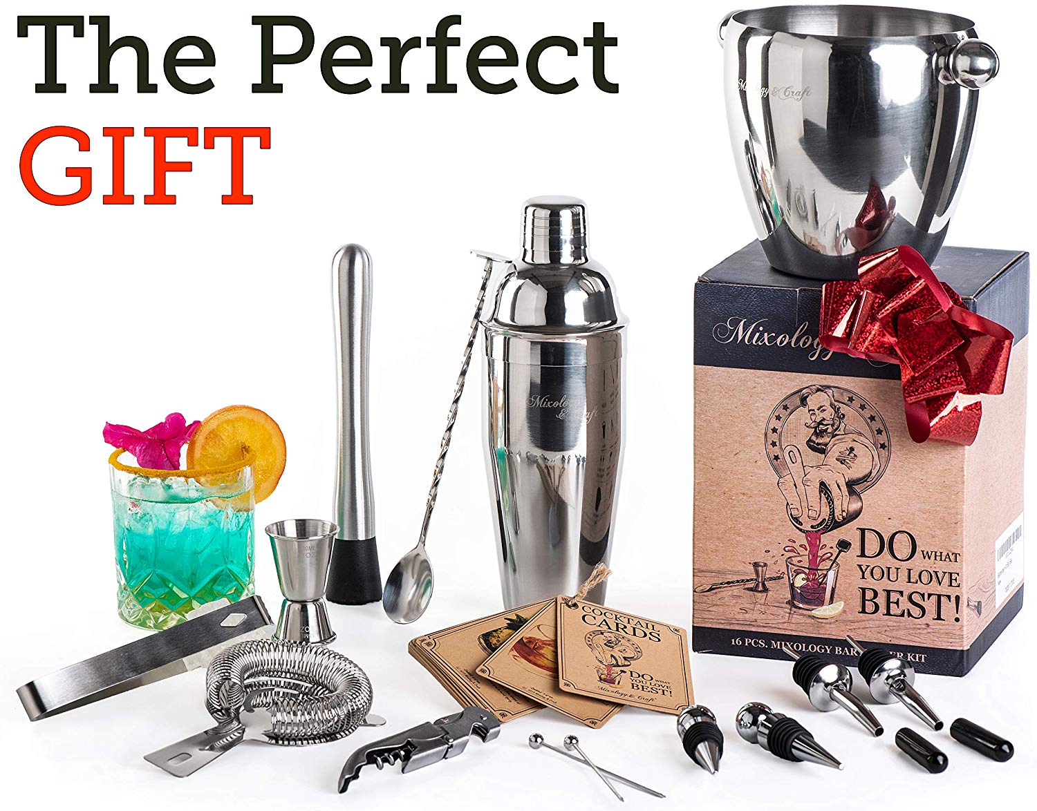 ● 🍹 TODO LO QUE NECESITAS (a excepción de el licor): 16- piezas TODO INCLUIDO equipo de coctelería y cubeta para hielo.. Te dará el poder de crear increíbles cócteles para tus invitados. Ya sea que seas un Bartender principiante o todo un Mixólogo profesional, sin importar si estas iniciando un Bar en casa o en el trabajo - Mixology & Crafts es la opción perfecta para ti.