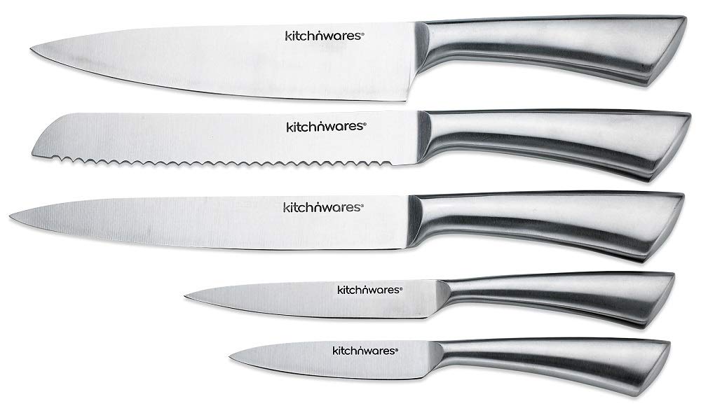 Kitch N' Wares - Juego de cuchillos con soporte acrílico (acero inoxidable, 6 piezas, para cortar y tallar, ideal para cocinar en casa y en la cocina comercial)